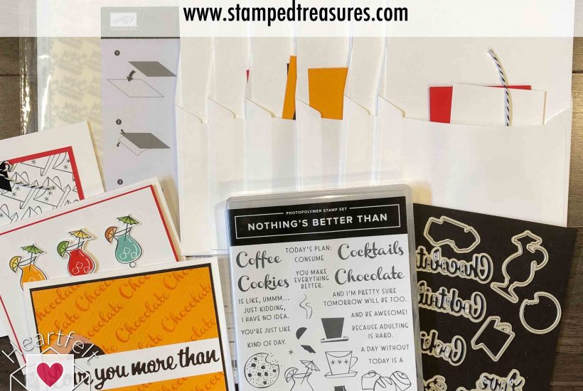 Laura and I are so excited to release the Nothing’s Better Than Heartfelt Card Kit in the mail. This is such a fun stamp set. I’m especially loving the cocktail image in this kit but there are so many GREAT images and greetings. Here’s how it works… You purchase the following items (or a minimum of $77.25 before shipping &…