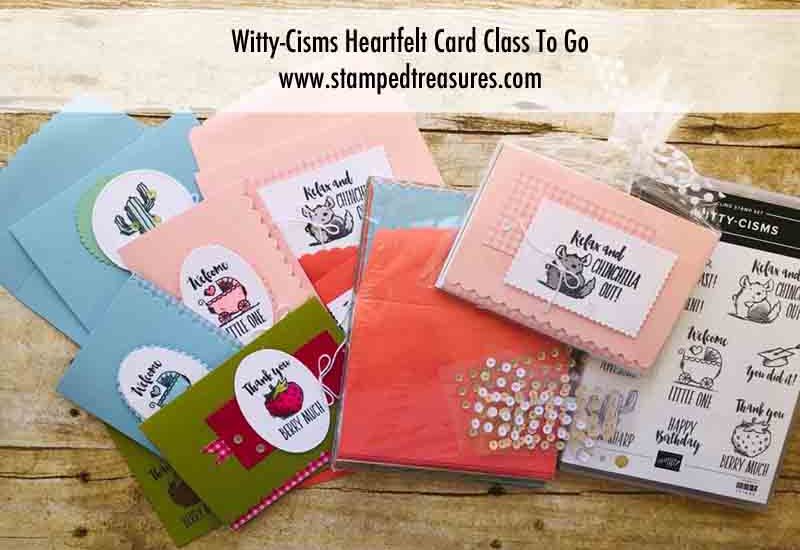 Laura and I are SO excited to announce this months class in the mail – the Witty-Cisms card class to go. This witty set is so much fun – with its cute sayings and images. But what I love most about this class is that it’s perfect for stampers of all ages! Most of us currently have more time on our hands than normal. Maybe…