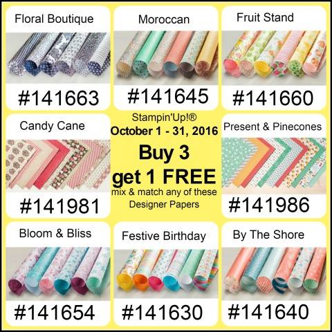 Don’t forget about the buy 3, get 1 free paper promotion! Stock up and save. You can never have enough patterned paper in my opinion:)