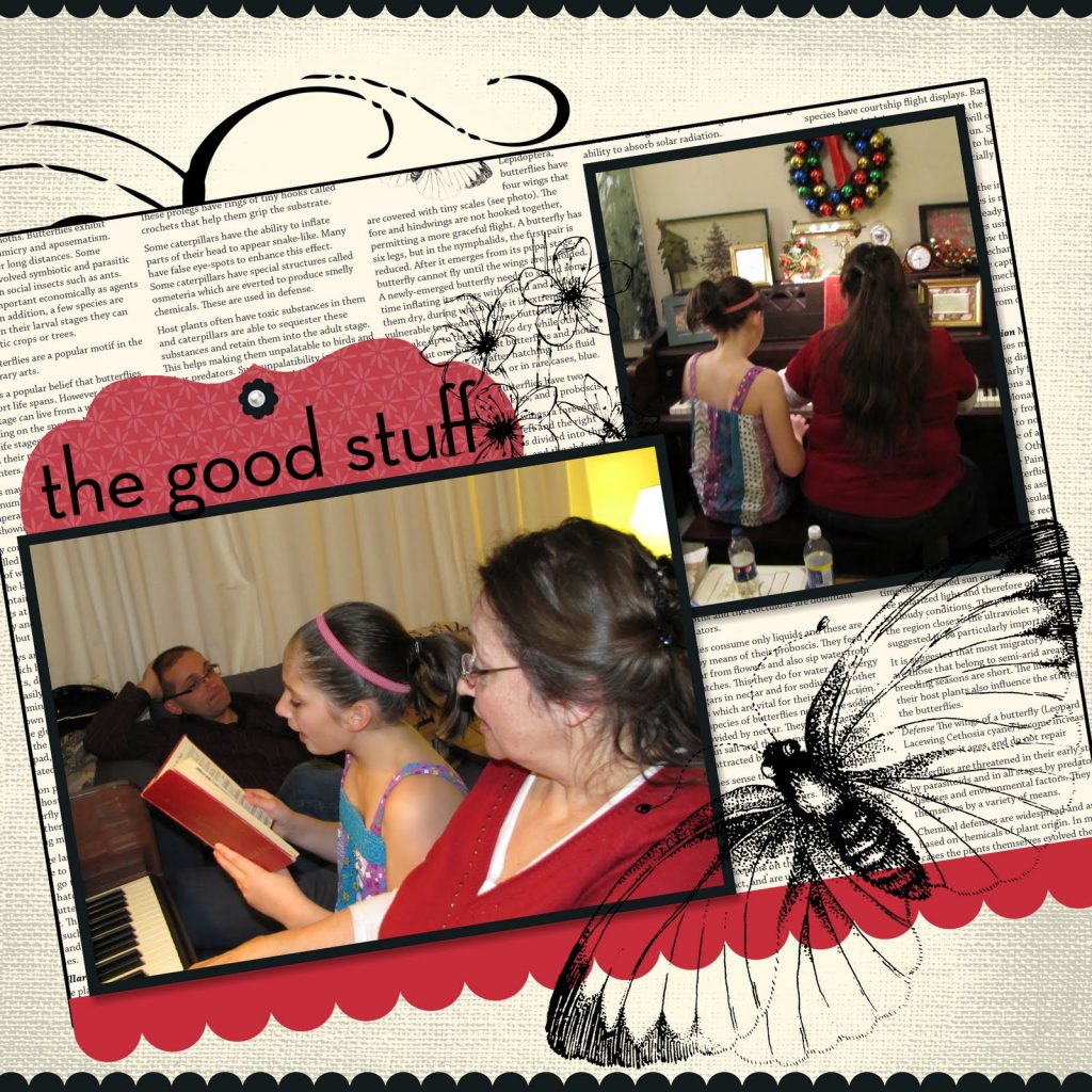 I love how this page turned out. The photos were taken at Christmas time but I didn’t want a Christmas theme. My daughter loves this tradition – singing Christmas carols while Grandma Gloria plays the piano. This is the only time she will sing for anyone, and she has such a wonderful voice. She would sing for hours.