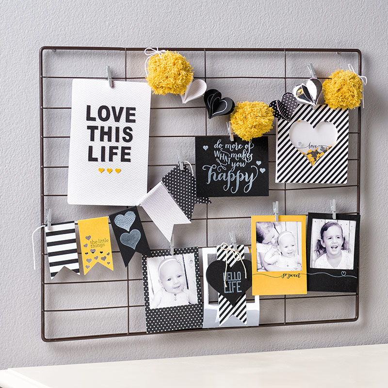 I have got a fun series of posts for this week – with a couple interuptions to break it up:) The series focuses on the Hello Life project kit. This kit includes all the supplies to create this fun home decor piece on the left. However, you can use the pieces in the kit to create so much more if you’d rather not have the decor piece. Today I’m sharing some of the cards that were created using the kit.